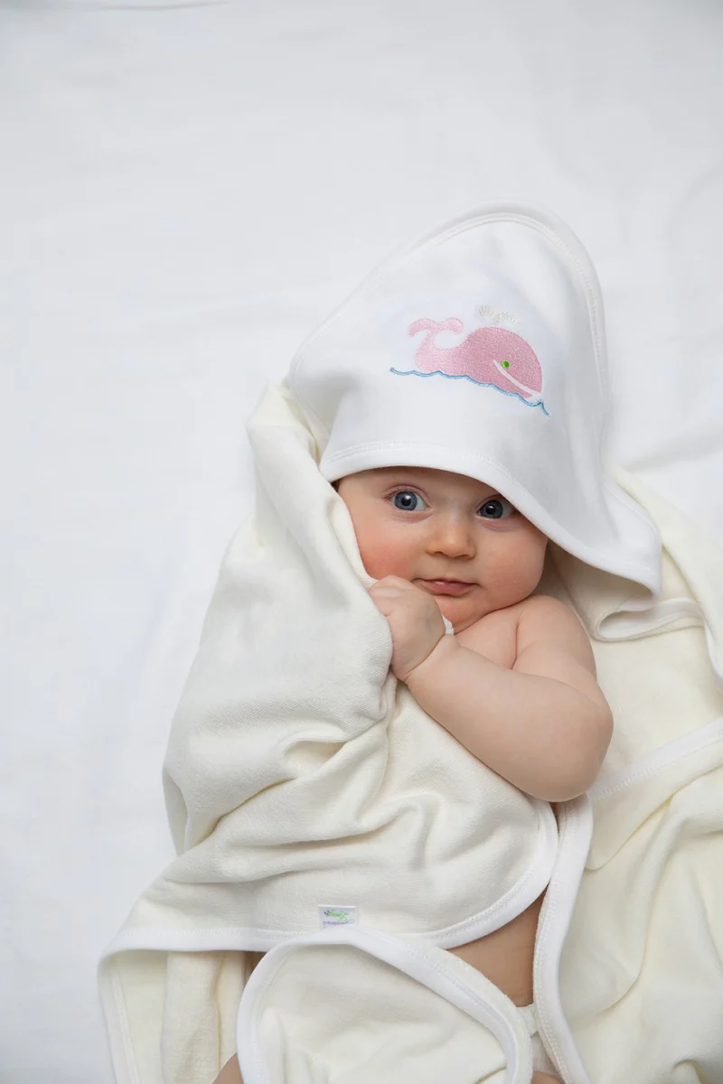Baby Hooded Towel, White Combed Cotton , Hand Embroidered