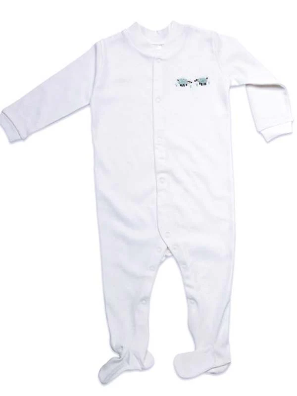 The Footies also have a single design embroidered on the baby’s bottom, inviting an irresistible cuddle from all! Remember to order your matching Hat and Bib.