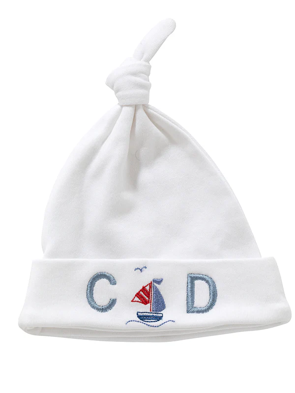 You can custom monogram any of our Baby Hats. See our Baby Font Chart to pick out what you'd like the font to be.